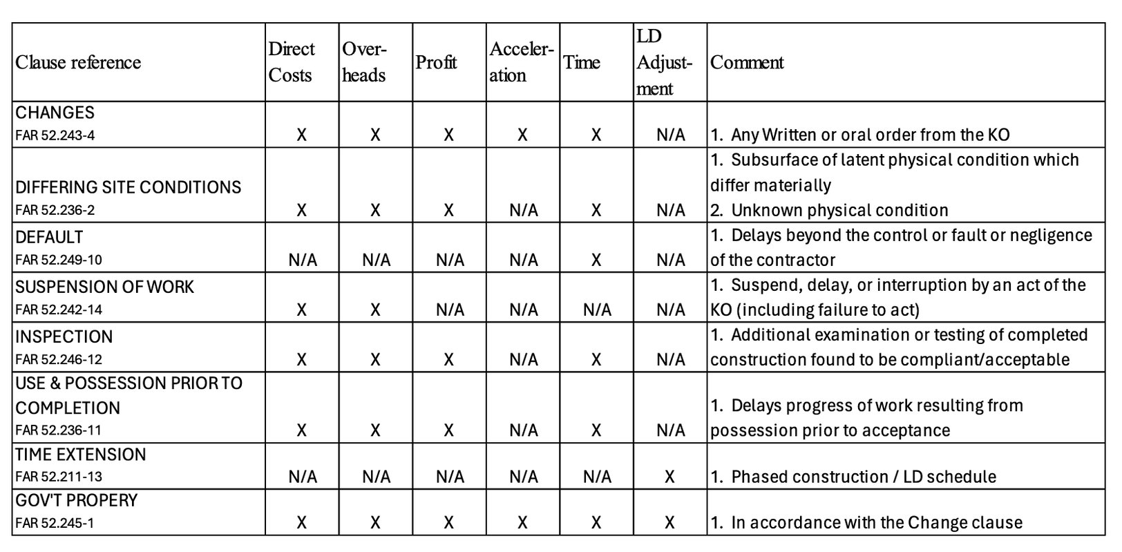 - Utilize Federal Acquisition Regulation (FAR) clauses in your serial letter. The following table provides a reference to the FAR clauses that will be used to remedy contractual issues (Carlson):